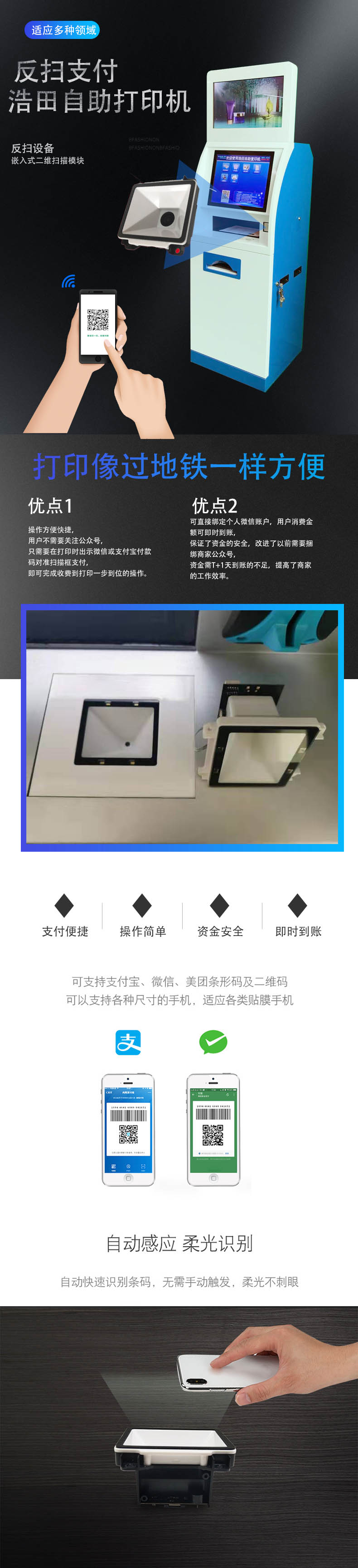 在談到微信、支付寶支付時,可能大家常用的是便利店購買東西、超市或者網(wǎng)購等等,當然也有很多自助支付服務的場所,比如說地鐵里的自助售賣機,掃描二維碼即可微信或者支付寶進行支付。除了這些,大家是否知道目前還有自助打印一體機支付打印的模式呢,比如說在很多圖書館、寫字樓的公共區(qū)域、學校等等,我們發(fā)現(xiàn)已經(jīng)有很多自助打印支付的模式,用戶通過微信或者支付寶進行支付即可完成自助打印和付款。下面一起來看看,這種自助手機支付打印是如何實現(xiàn)的?