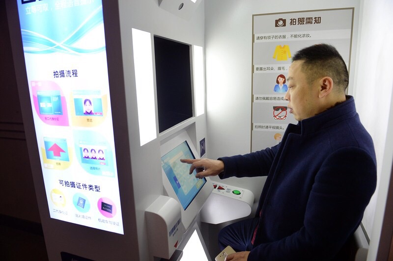 1. 群眾通過閱讀粘貼在機(jī)器外面的證件照片拍攝指引,機(jī)器正面有梳妝鏡,整理好發(fā)型、頭飾、衣服,然后進(jìn)入拍照機(jī)內(nèi)。