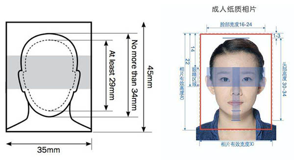 出入境證件相片(紙質(zhì)相片33㎜×48㎜;數(shù)碼相片寬354-480px,高472-640px,寬高比為3:4)