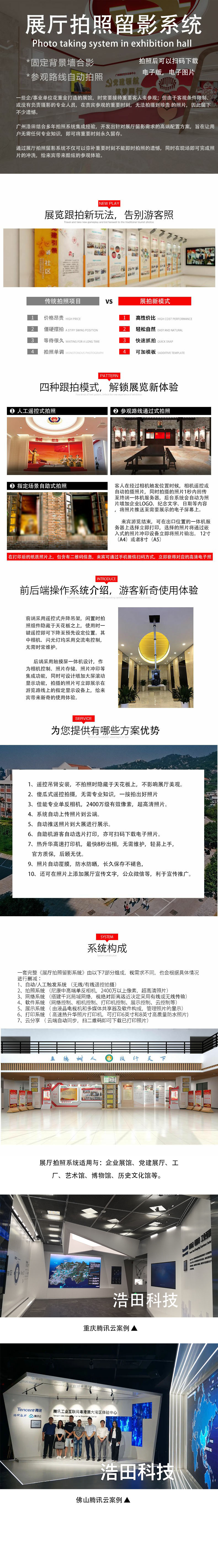 廣州浩田結(jié)合多年拍照系統(tǒng)集成經(jīng)驗(yàn),開發(fā)出針對(duì)展廳留影需求的高端配置方案,旨在讓用戶無(wú)需任何專業(yè)知識(shí),即可將重要時(shí)刻永久留存。